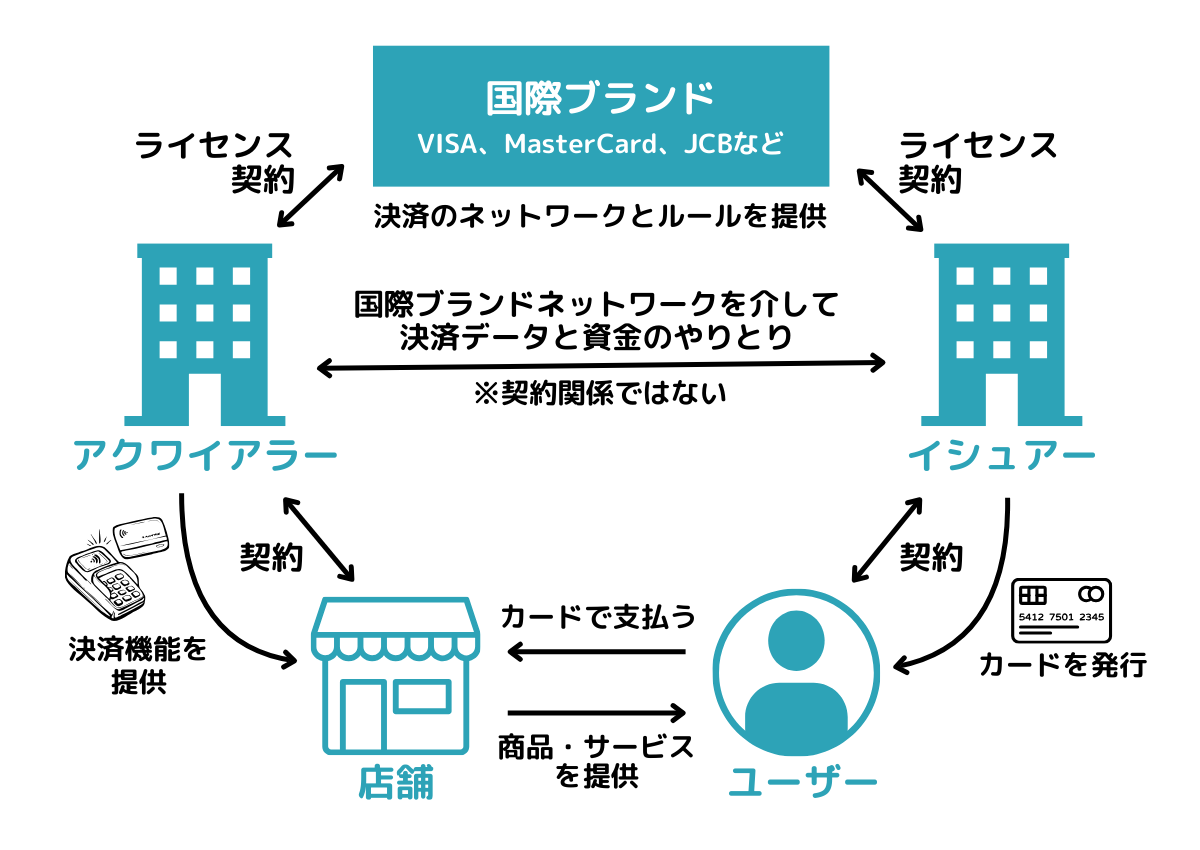 解説に入る前にまず、クレジットカード界隈にはざっくり次のような「登場人物(プレイヤー)」がいます。