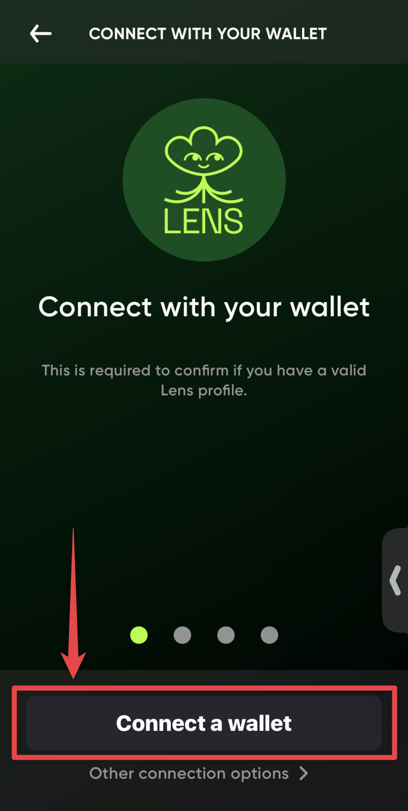 「Connect with your wallet」画面になるので「Connect a wallet」をタップします。
